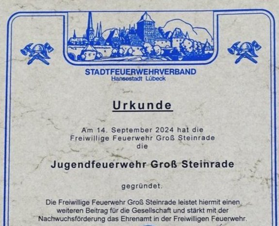 Am 14. September wurde die Jugendfeuerwehr der Freiwilligen Feuerwehr Lübeck Groß Steinrade nach mehrjähriger Planungsphase gegründet.